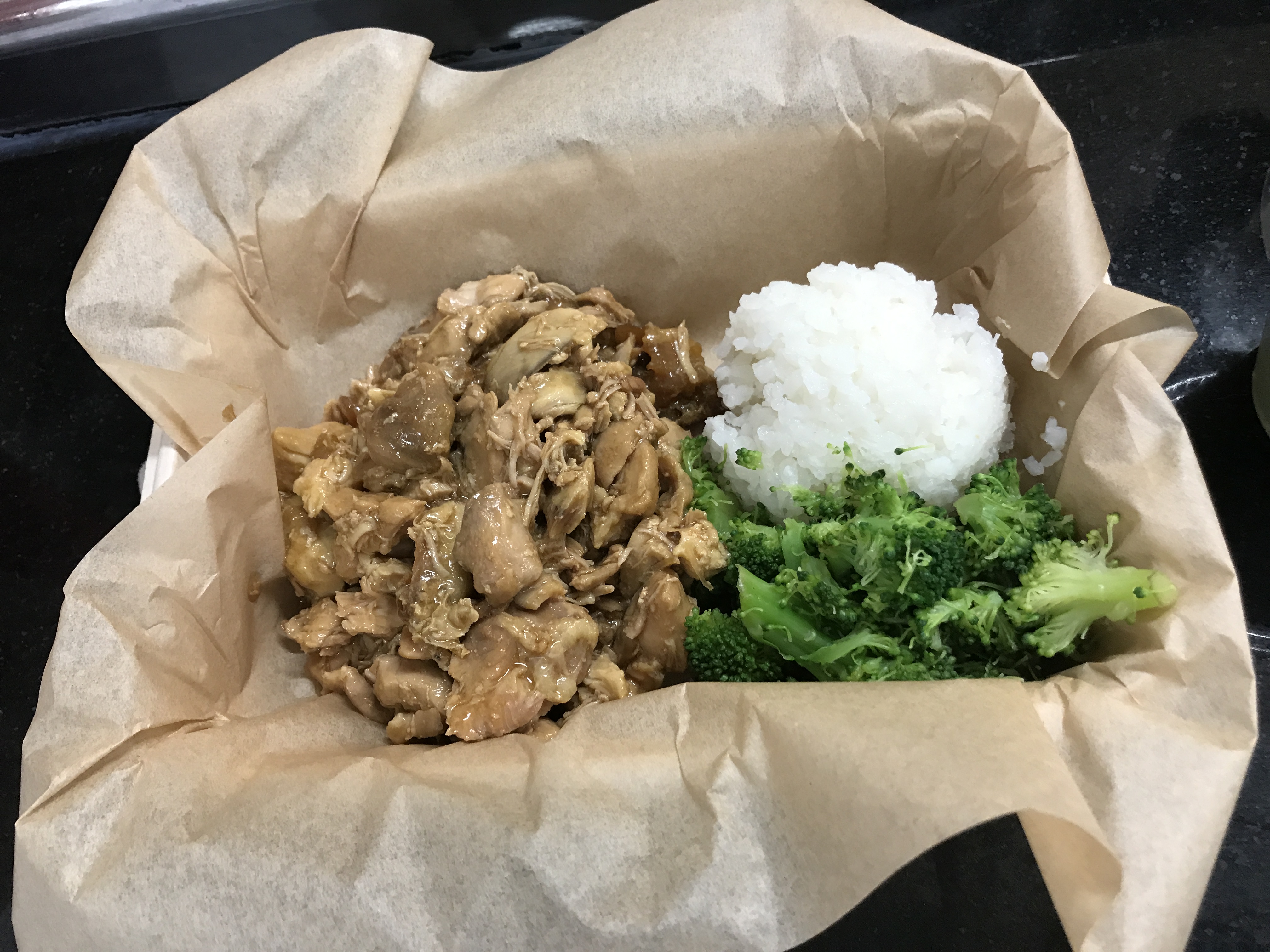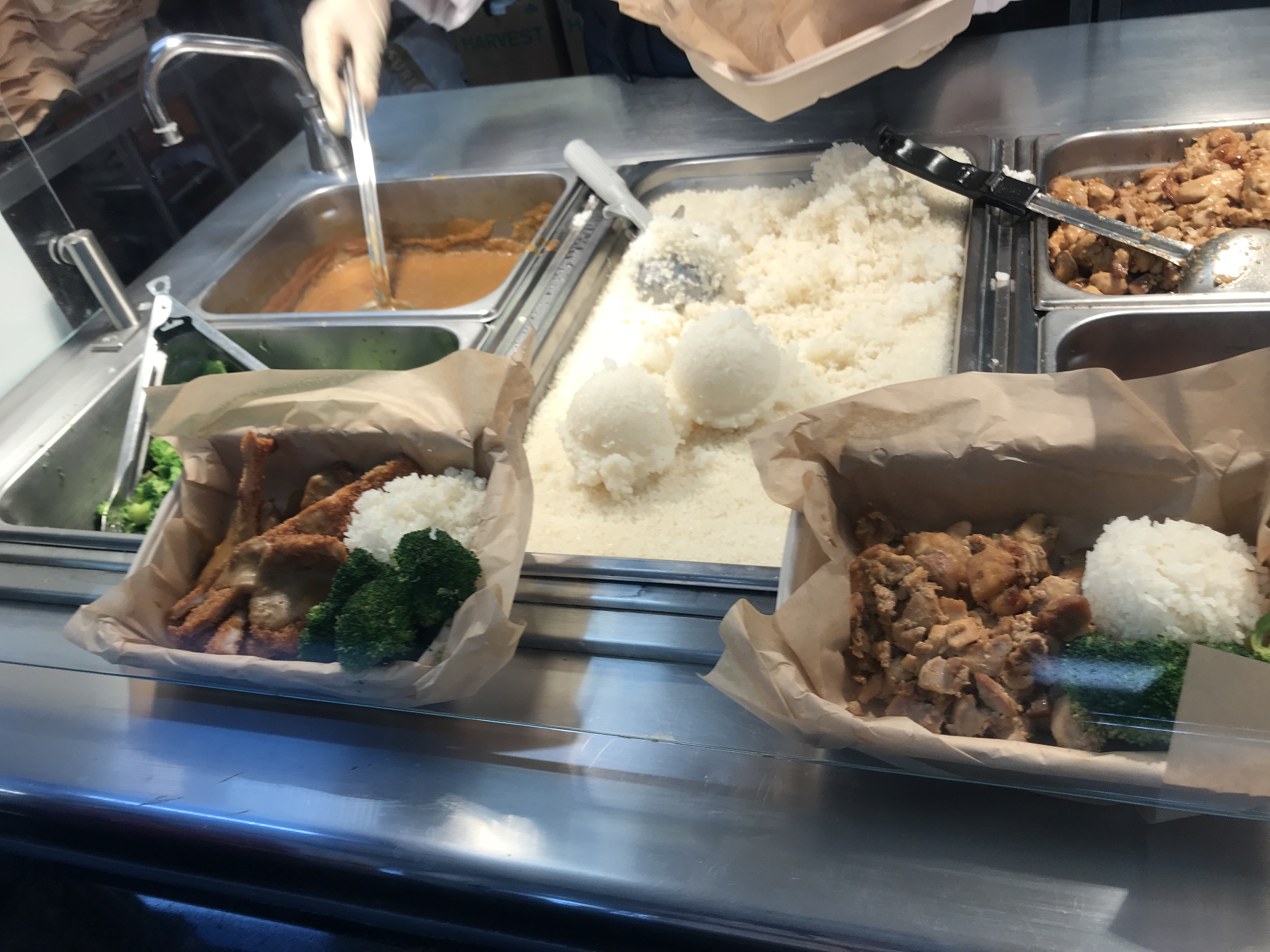 (後日、チキンテリヤキもオーダー。鶏肉を照り焼きダレにつけて焼いたものが、ご飯に添えられている。ちょっと味は濃いめで、ご飯がもう少し欲しくなった。醤油味だが、日本のテリヤキとは少々違う)