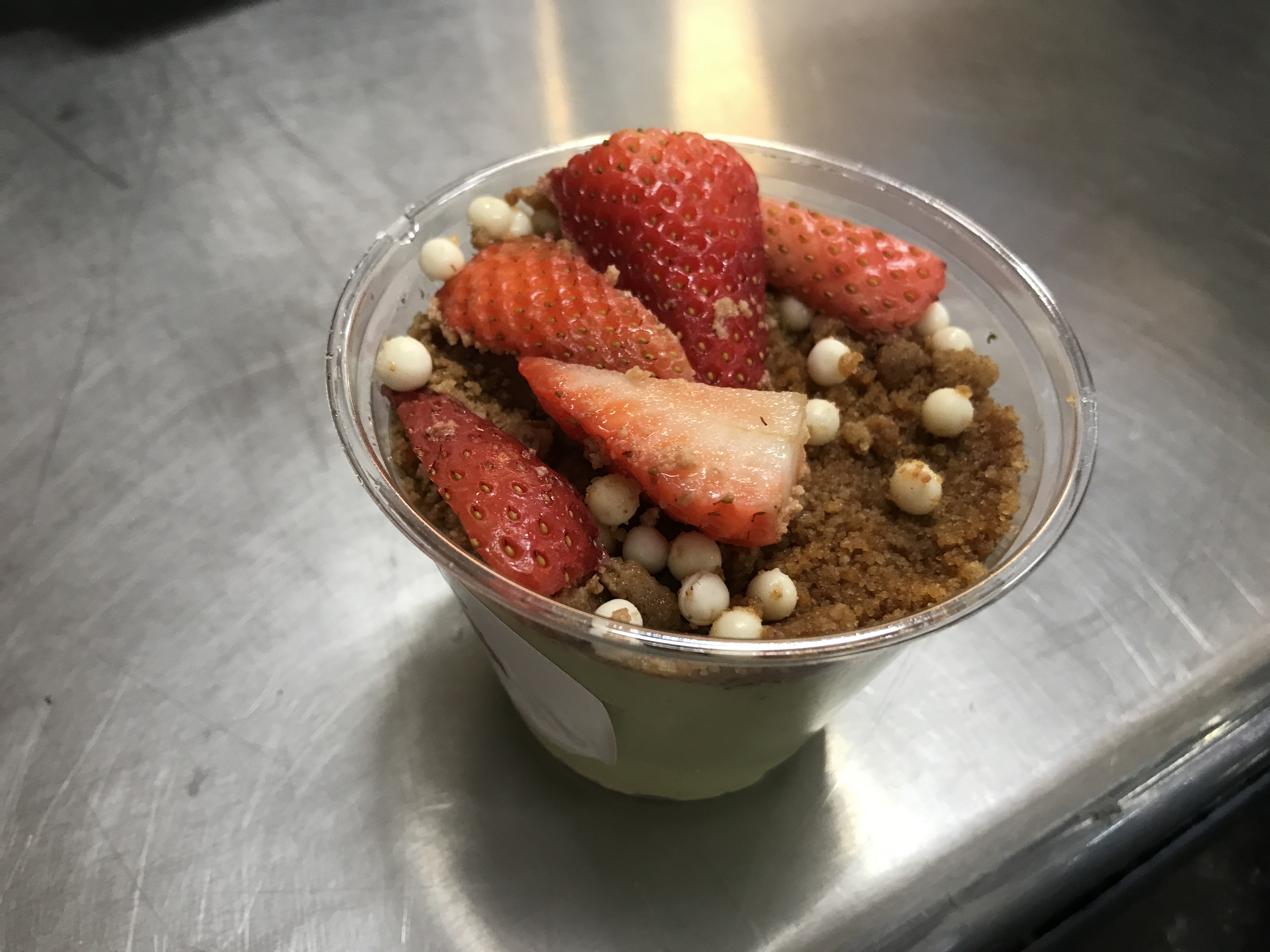抹茶チーズケーキはトッピングのグラハムクラッカーとイチゴの部分は美味しかったが、その下の抹茶チーズケーキは抹茶の風味が強くて、味が単調。全部は食べきれなかった。