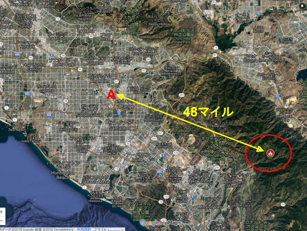 冒頭の写真のように、夜にOCから見ると山々がまるで空襲のように赤く染まっており、48マイルという距離は意外と近いことに気づかされる。
