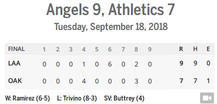 試合は初回にトラウトの35号ソロでエンゼルスが先制するも、4回裏にリリーフで出たベドローシアンがA’sの連打を浴び、あっという間に1-4とリードされる。ベドローシアンは今年も安定しない1年だった。抑えたかと思えば打たれ、打たれたかと思えば抑える。2010年のエンゼルスのドラフト1巡目指名(全体29巡目)なのだが、ずーっと一流半から抜け出せない。来年も中途半端なポジションになりそうだ。