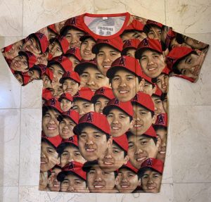 この大胆なデザインのTシャツ、インパクトはハンパじゃない。球場以外はどこで着るべきか?日本人同士の集まりはもちろんのこと、これで街を歩けば話題になることは間違いない。エンゼルス史上ここまでクールな(奇抜な?)ギブアウェイは記憶にない。大谷ファンならずともチャンスがあれば是非手に入れたいお宝アイテムだ。