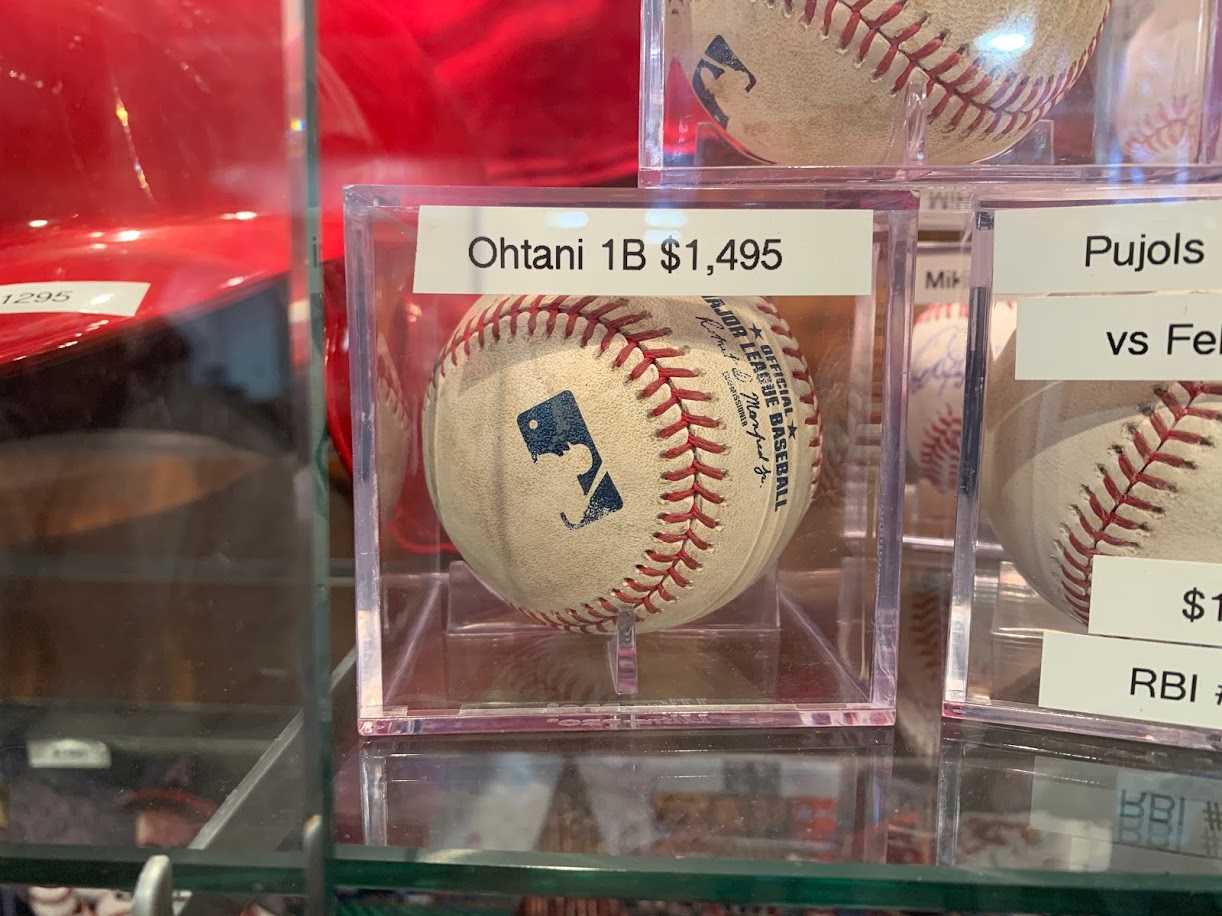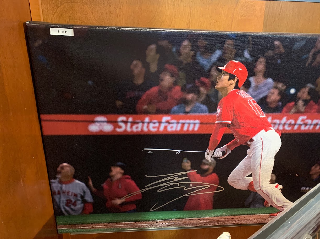 先週、大谷選手がリアル二刀流でデビューした日に実に1年半ぶりにエンゼルスタジアムに行った。チームストアやギャラリーを回って見つけた大谷選手のサイン入りアイテムなどを紹介。いずれも高価だがスタジアム内のオフィシャル・ショップなので本物に間違いなく、ネットオークションなどに比べると偽物などをつかむ心配がないのはありがたい。