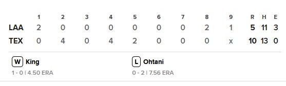 トラウトの先制ホーマーの後、ウォルシュのタイムリーで1点追加。良い感じでゲームに入ったエンゼルスだったがその後攻守で凡プレーが続出。結局自らリズムを壊して大敗となった。